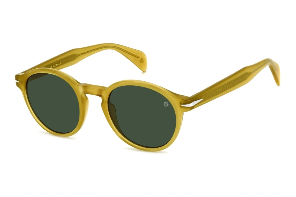 David Beckham Erkek Güneş Gözlüğü - Yuvarlak Sarı Çerçeve Yeşil Cam %100 UV Koruma 1178/S 40G