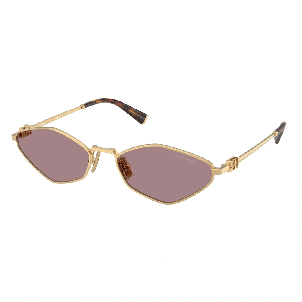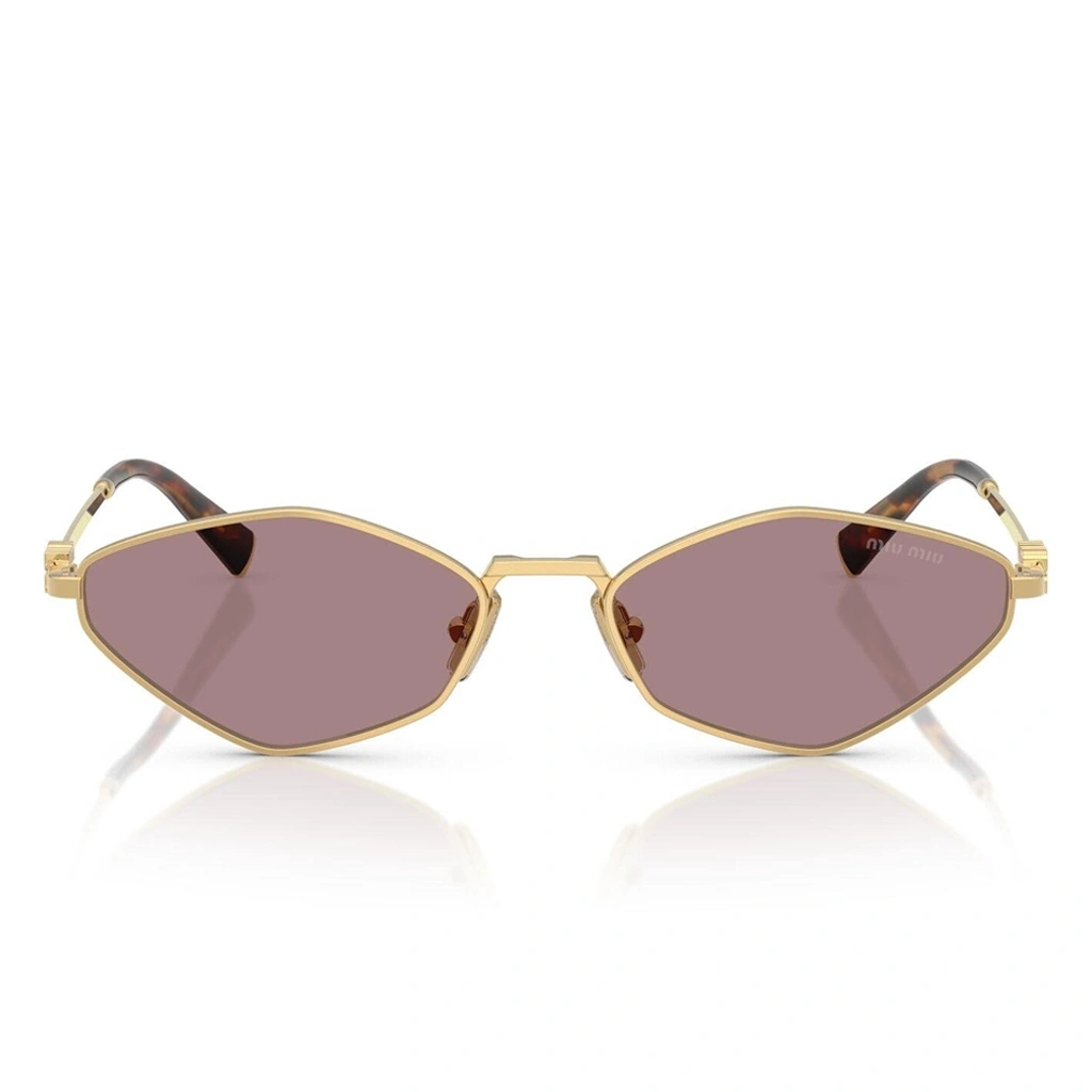 Miu Miu Kadın Güneş Gözlüğü - Asimetrik Altın Metal Çerçeve Pembe Cam 0MU 56ZS 5AK20I 56
