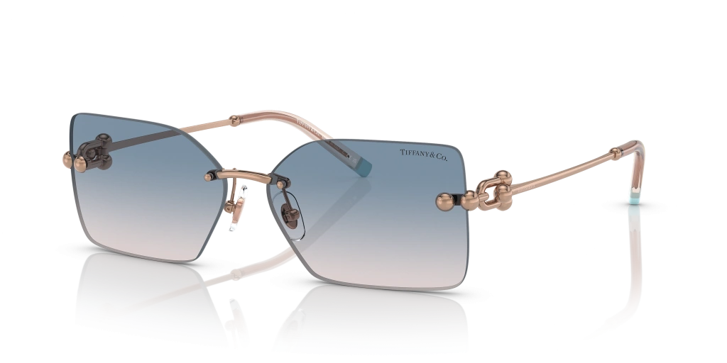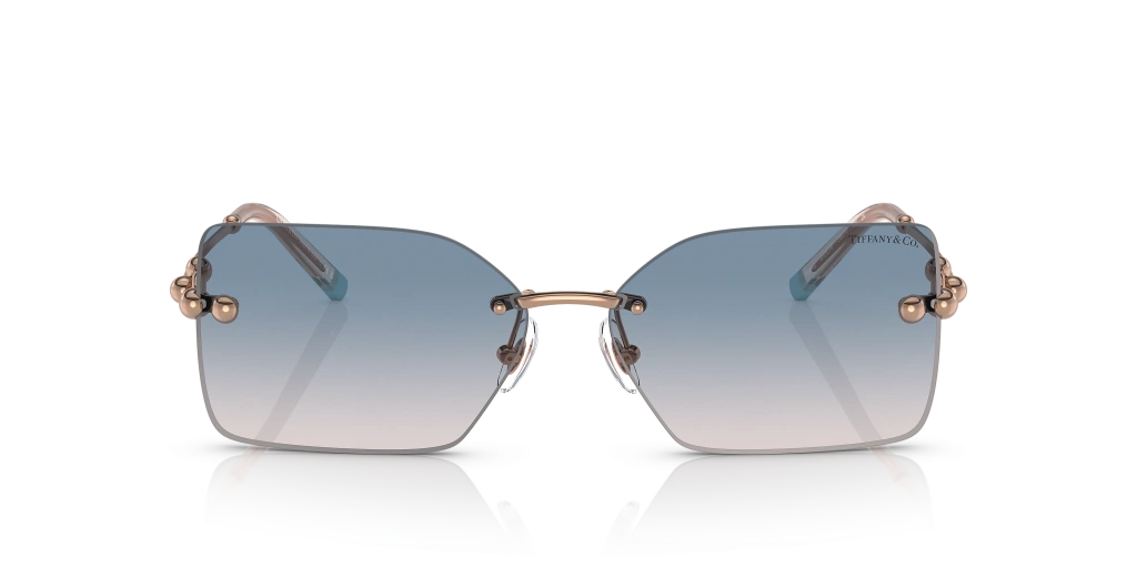 Tiffany & Co. Kadın Güneş Gözlüğü - Dikdörtgen Kırmızı Metal Çerçeve Kahverengi Degrade Mavi Cam %100 UV Koruma 3088