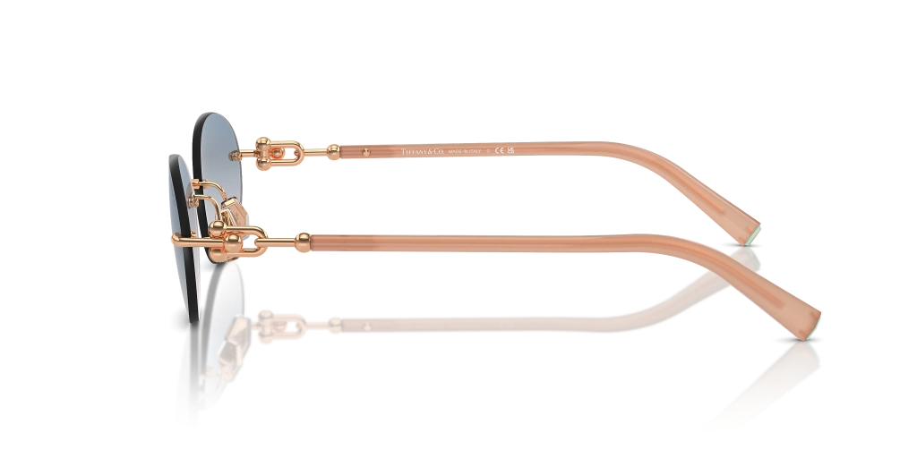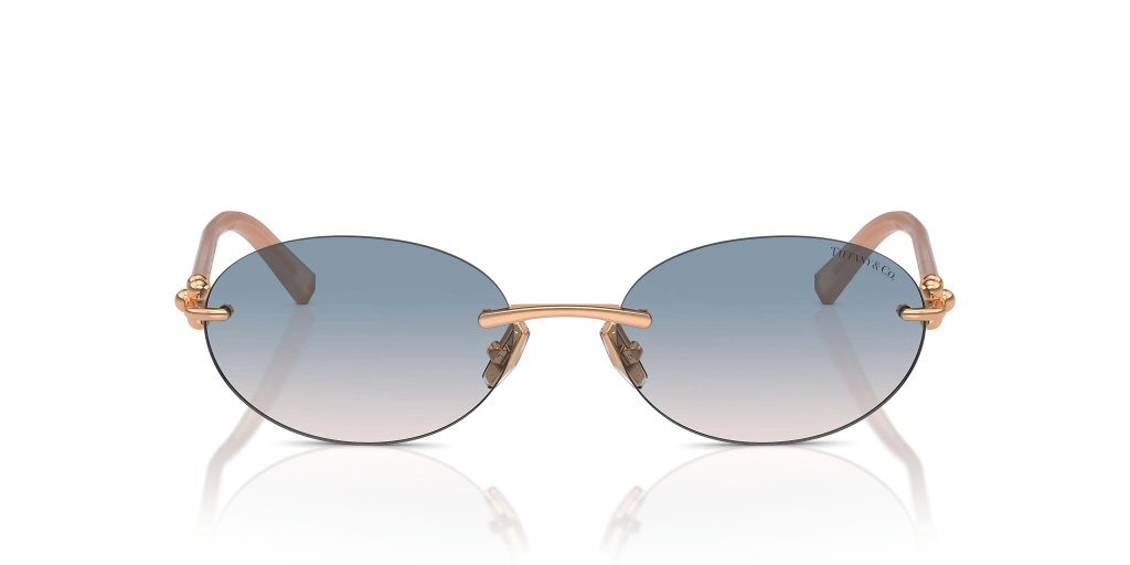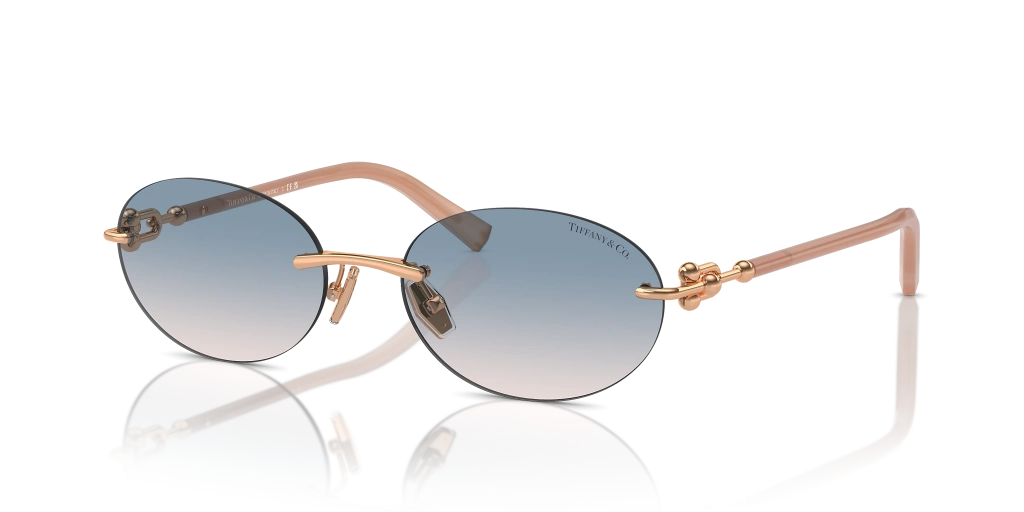 Tiffany & Co. Kadın Güneş Gözlüğü - Oval Pembe Altın Asetat Metal Çerçeve Kahverengi Degrade Mavi Cam %100 UV Koruma 0TF3104D