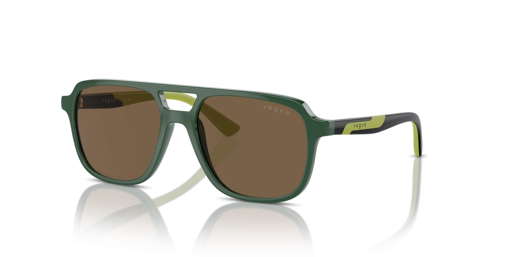 Vogue Junior Çocuk Güneş Gözlüğü - Dikdörtgen Form Koyu Yeşil Kemik Çerçeve Koyu Kahverengi Cam VJ2024