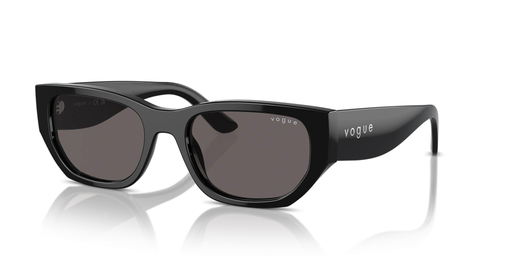 Vogue Unisex Güneş Gözlüğü - Dikdörtgen Form Siyah Kemik Çerçeve Füme Cam 0VO5586S